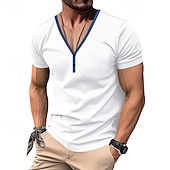More information about Men's Button T Shirt T Shirt Henley Shirt Tee Short Sleeve V Neck Henley Spring & Summer Color Block Solid / Plain Color Fashion Designer Patchwork Vacation Street Going out Black White Wine Top Tee