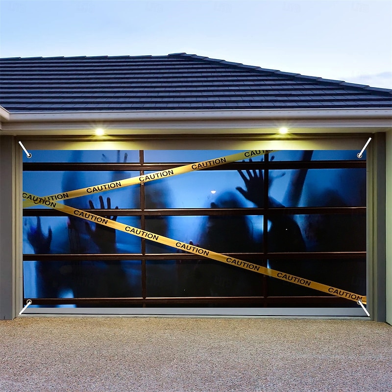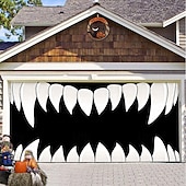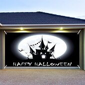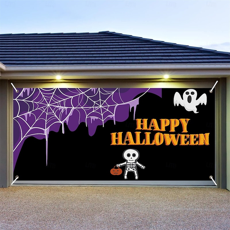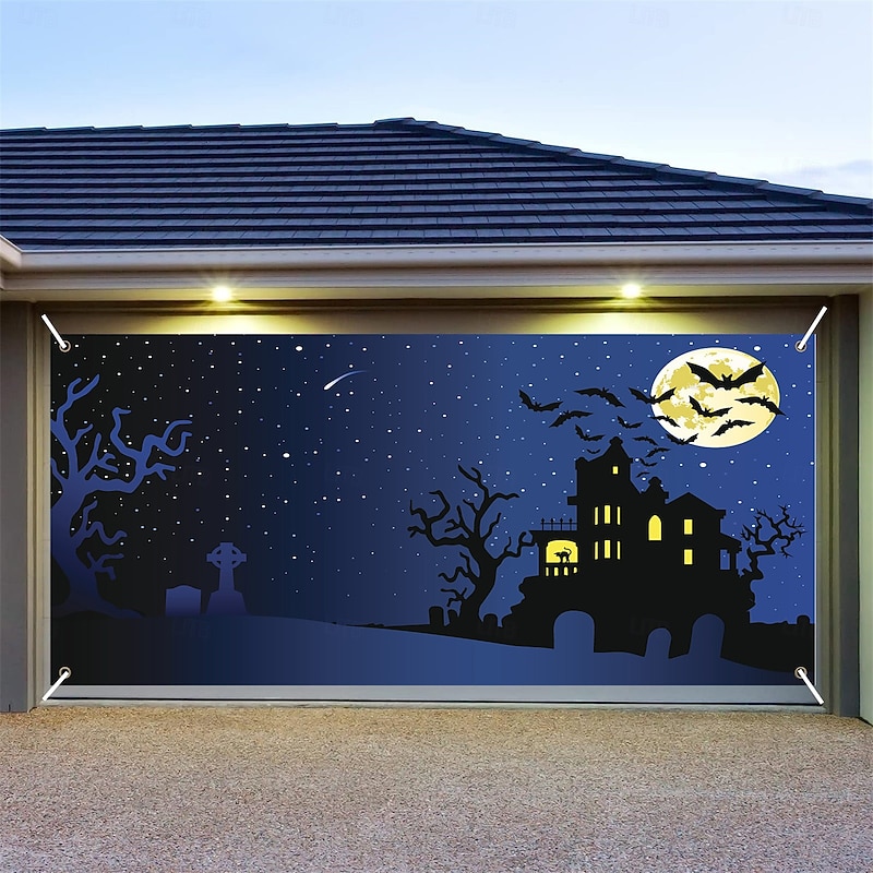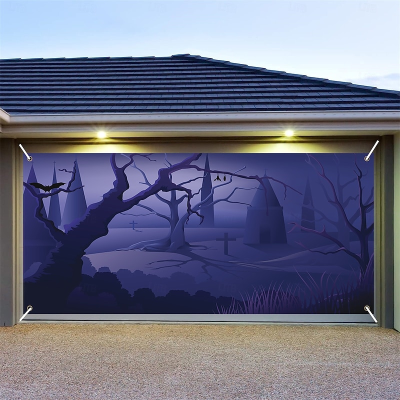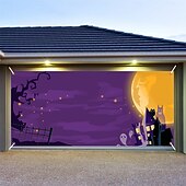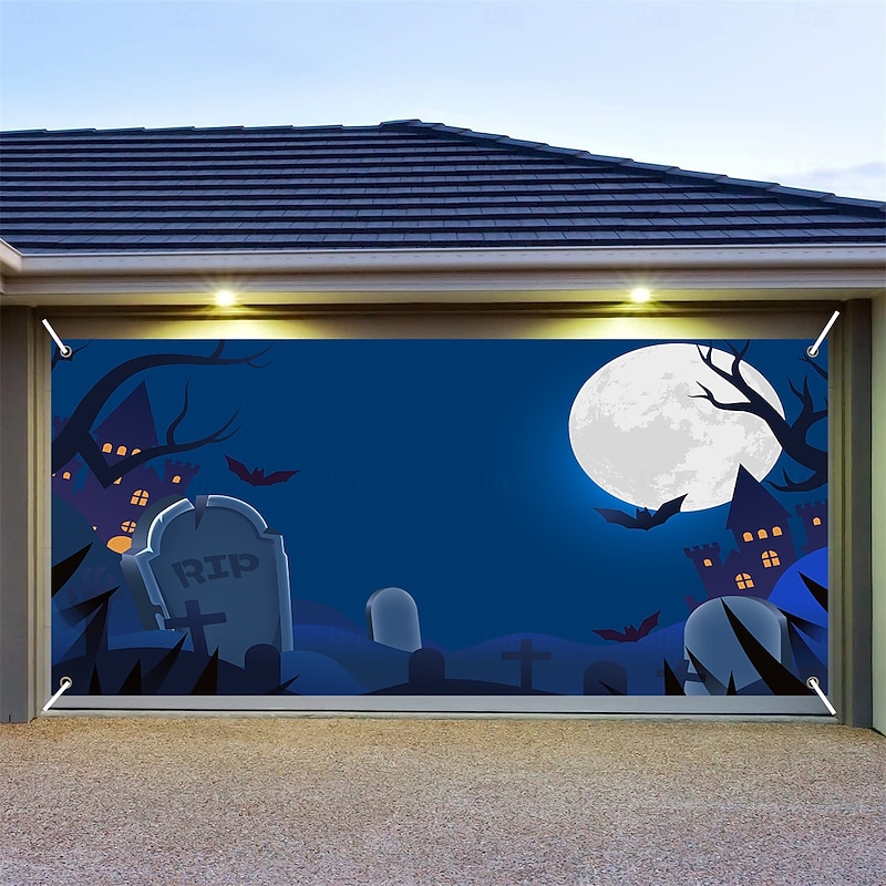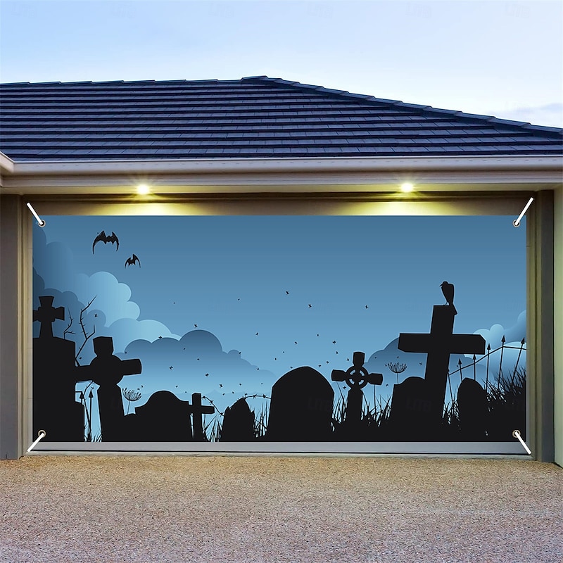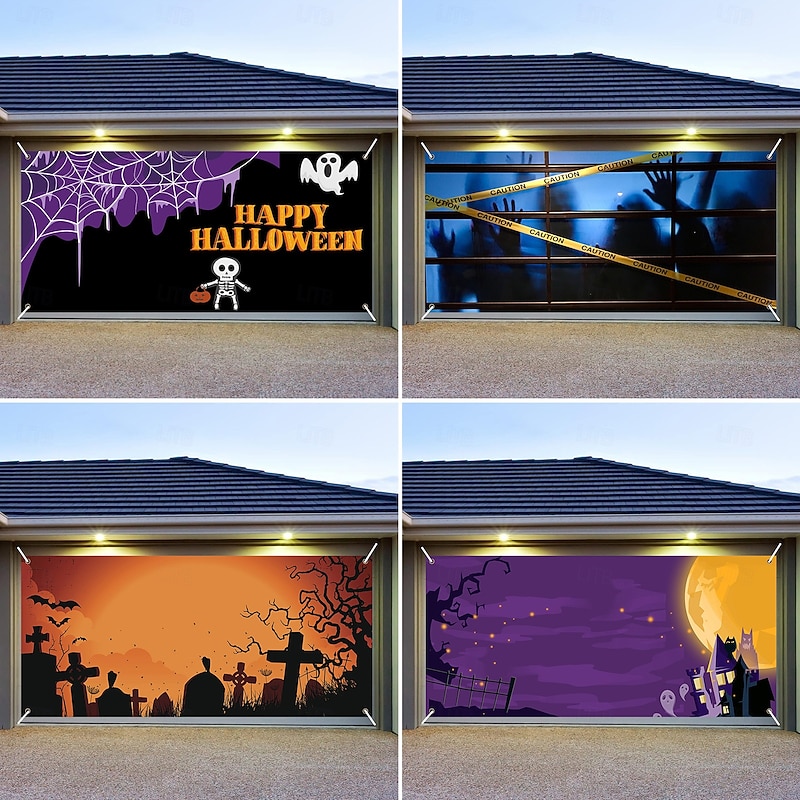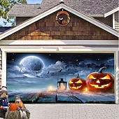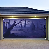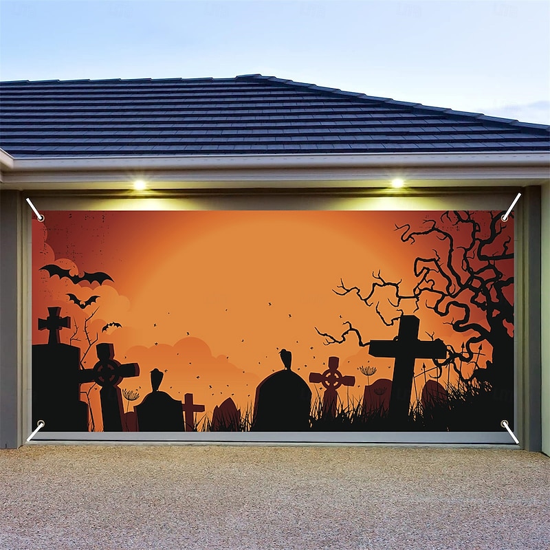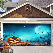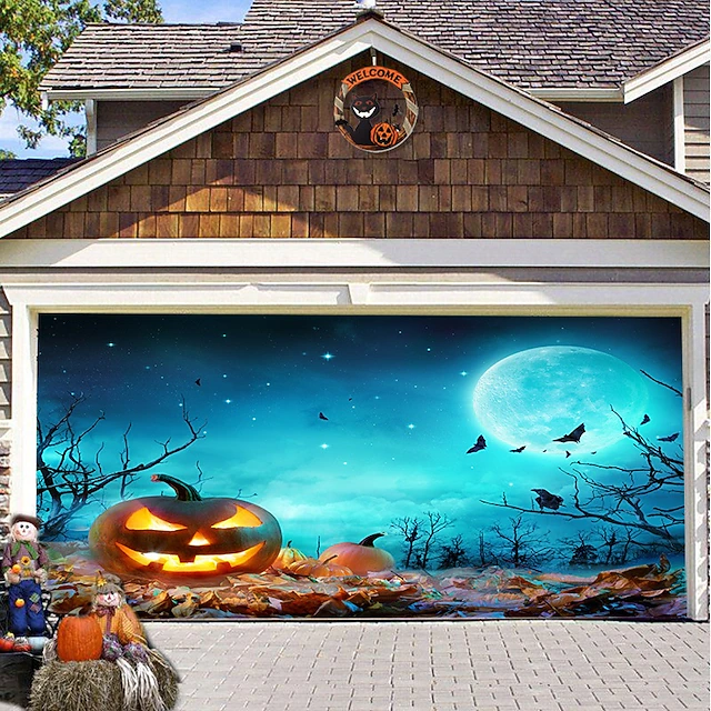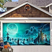 HOT ! Halloween Door Decorations Outdoor Halloween Garage Door Cover Pumpkins Skeletons Banner Ghost Graveyard Large Christmas Backdrop Decoration for Holiday Outdoor Garage Door Home Wall Decorations