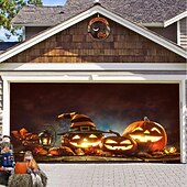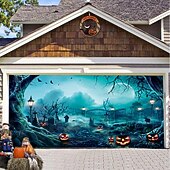 More information about Halloween Door Decorations Outdoor Halloween Garage Door Cover Pumpkins Skeletons Banner Ghost Graveyard Large Christmas Backdrop Decoration for Holiday Outdoor Garage Door Home Wall Decorations