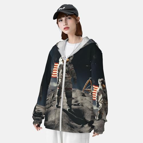 • UV Protection: Our Astronaut Landing on The Moon long sleeve sun shirts features cutting-edge UPF 50+ technology, effectively blocking UV rays to ensure robust sun protection during your outdoor adventures. Designed with a hood to protect the neck, and other sun-exposed areas. Ideal for extended outdoor activities