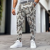 HOT ! Men's Snakeskin Dress Pants Mid Waist Fashion Business Casual Formal Outdoor Street Zipper Pocket Summer Spring Fall 3D Print Silver