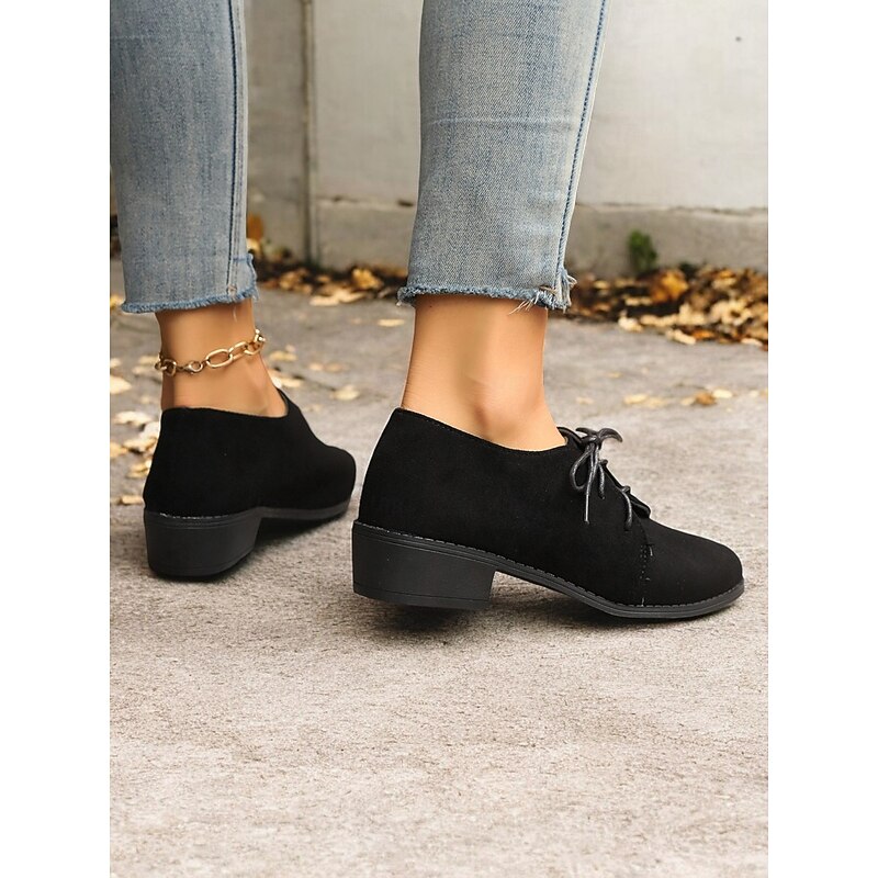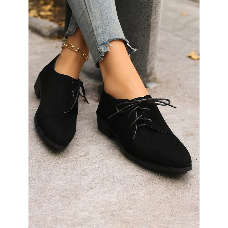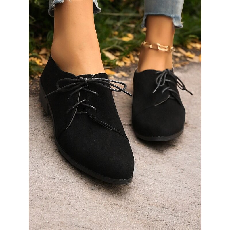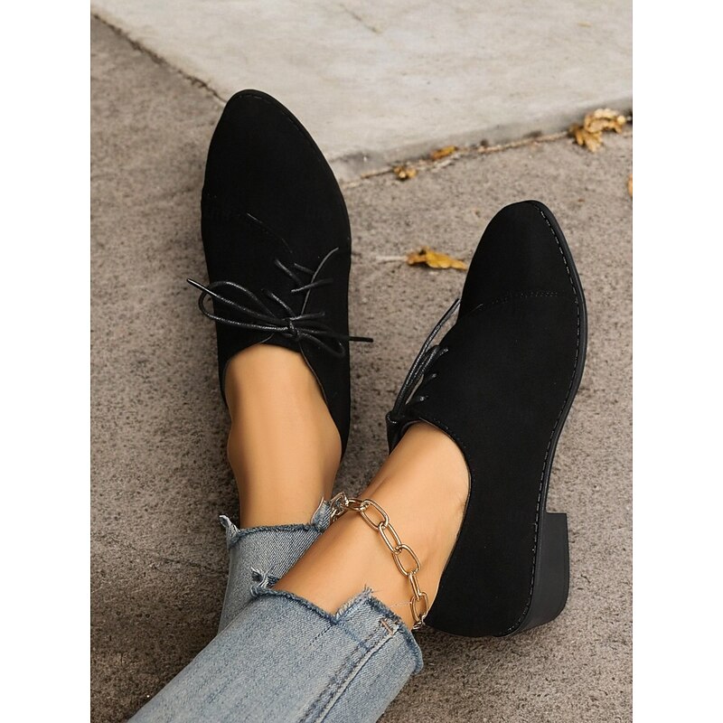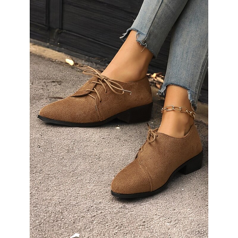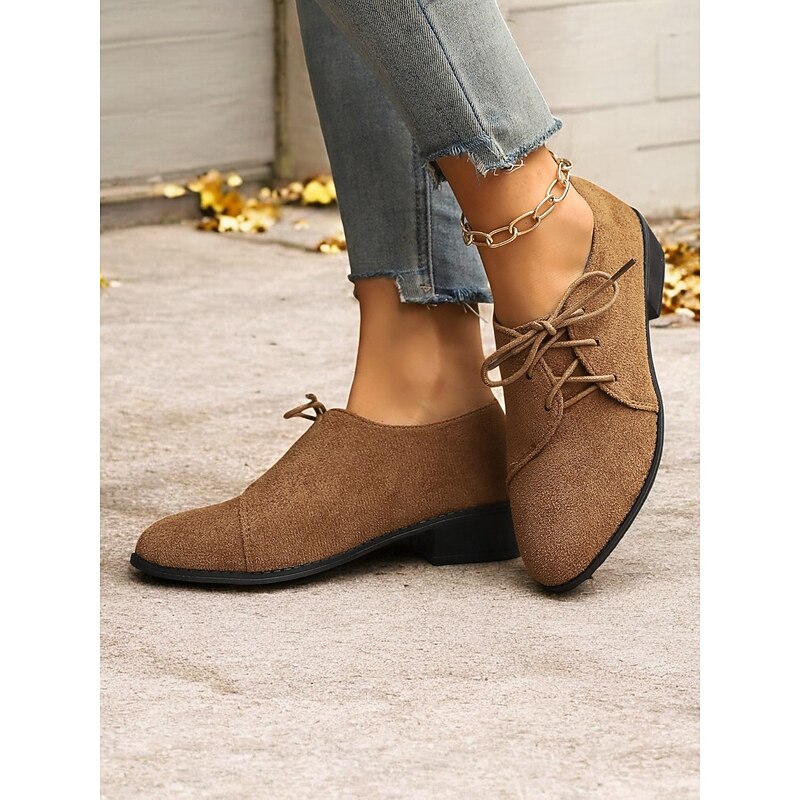 Highlights [Fabric and Material] : Crafted from high-quality faux suede, these shoes feature a rich brown hue that exudes a luxurious and cozy feel. The leopard print fabric embellishment adds an eye-catching contrast, making a bold fashion statement. The lining is made of synthetic leather, offering a soft and comfortable interior. [Fit and Comfort] : These lace-up flats are designed with a round toe and standard size fit, ensuring comfort during extended wear. The low heel and durable rubber outsole provide stability and ease of movement, making them perfect for daily activities. [Design Highlights] : The shoes boast a trendy leopard print pattern at the toe, creating a striking visual appeal. The lace-up closure not only adds a touch of elegance but also allows for an adjustable, secure fit. The combination of faux suede and leopard print adds a wild yet sophisticated edge to any outfit. [Occasion and Style] : Ideal for both casual and semi-formal occasions, these shoes can effortlessly elevate your look, whether for daily wear or at work. They are great for adding a hint of wild elegance to your ensemble, seamlessly blending comfort with style. [Size Range] : Available in a wide range of sizes from US6 to US10.5, these flats are designed to accommodate various foot sizes. Simply select your usual size for the perfect fit.