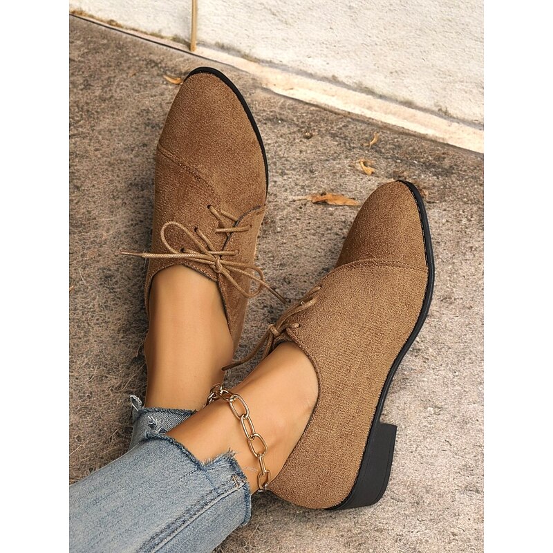 Brown Faux Suede Leopard Print Oxford Shoes - Stylish Lace-Up Flats for Women, Perfect for Casual and Vintage Looks 19