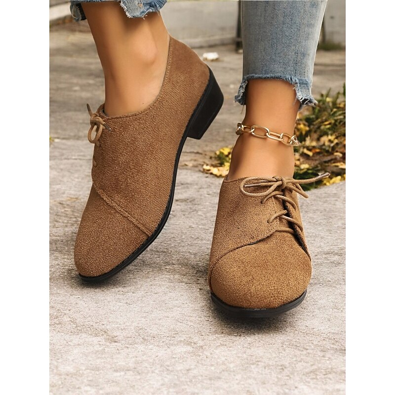 More information about Brown Faux Suede Leopard Print Oxford Shoes - Stylish Lace-Up Flats for Women, Perfect for Casual and Vintage Looks