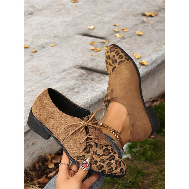 Brown Faux Suede Leopard Print Oxford Shoes - Stylish Lace-Up Flats for Women, Perfect for Casual and Vintage Looks 17
