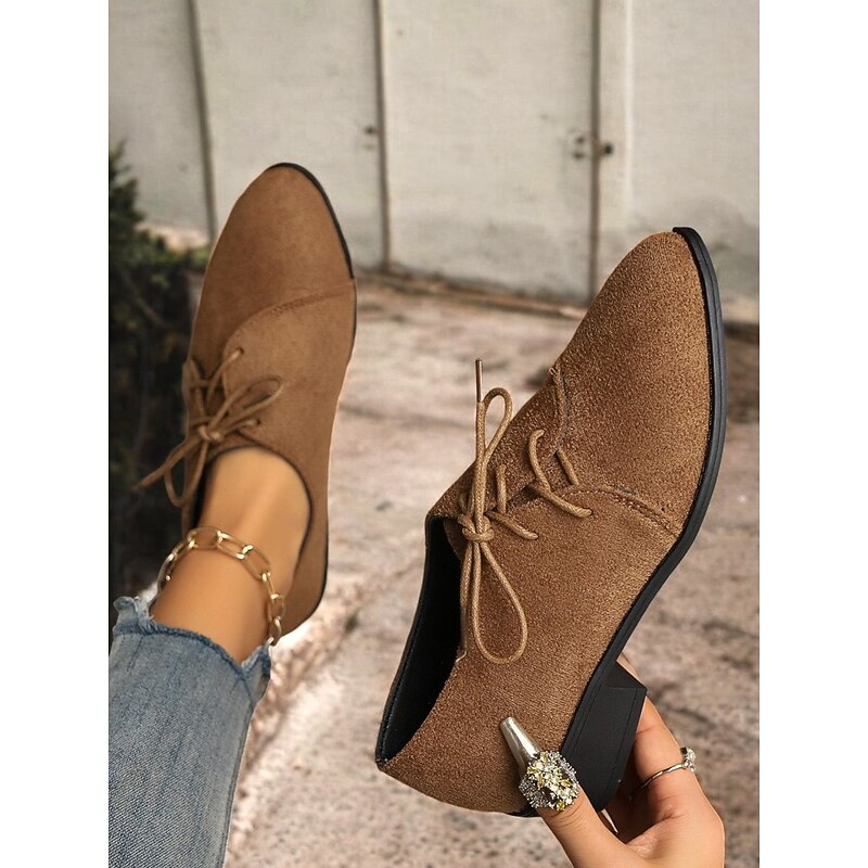 HOT ! Brown Faux Suede Leopard Print Oxford Shoes - Stylish Lace-Up Flats for Women, Perfect for Casual and Vintage Looks