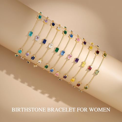 • Gold Birthstone Bracelet: The dainty gold bracelet for women is unique and magnificent, adorned with beautiful square 5A cubic zirconia stones. It is a simple piece that will complement any look on any occasion, for everyday, dating, work, or formal occasions