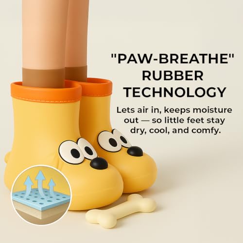 Toddler Rain Boots – Premium Rubber Kids Rain Boots for Boys & Girls with Non-Slip Soles – Children's EVA Outdoor Shoes - Beige Doggy Paw Design 1