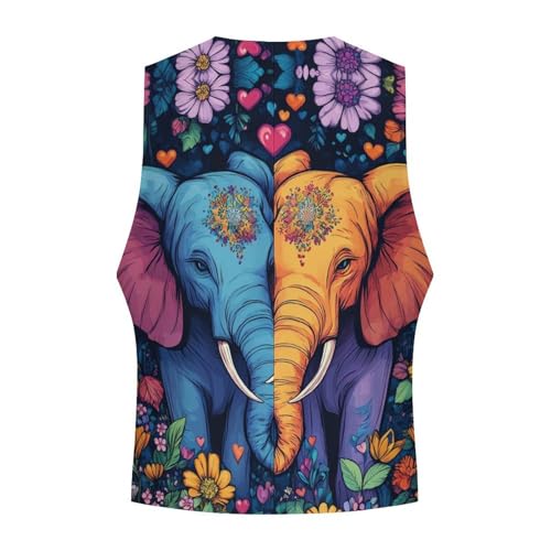 Elephant Couple in Love Flower Men's Suit Vests Dress Vest V-Neck Waistcoat Slim Business Formal with Pocket 1