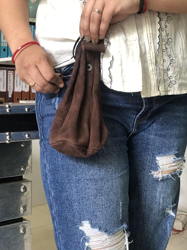 HOT ! Generic Medieval Suede Drawstring Dark Brown Pouch Bag, Ideal for SCA LARP Reenactment & Ren Fair, Leather Drawstring Pouch Bag, Renaissance Pouch Bag