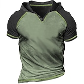 More information about Men's T Shirt Tee Top Short Sleeves Hooded Summer Color Block Raglan Sleeve Fashion Designer Basic Patchwork Vacation Street Going out Blue Green Khaki Top Tee for Men