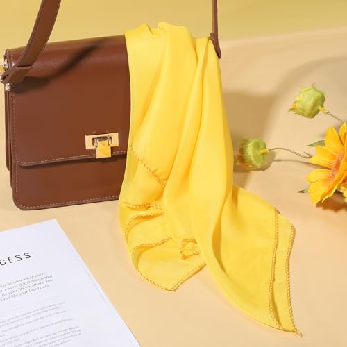 • Premium Chiffon Fabric: Crafted from chiffon polyester, this yellow square neck head scarf guarantees a soft, breathable, and silky feel, providing comfort and coolness. Ideal for all seasons, its luxurious texture adds an appealing touch to your wardrobe without any itchiness.