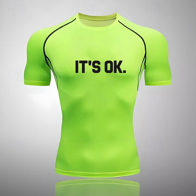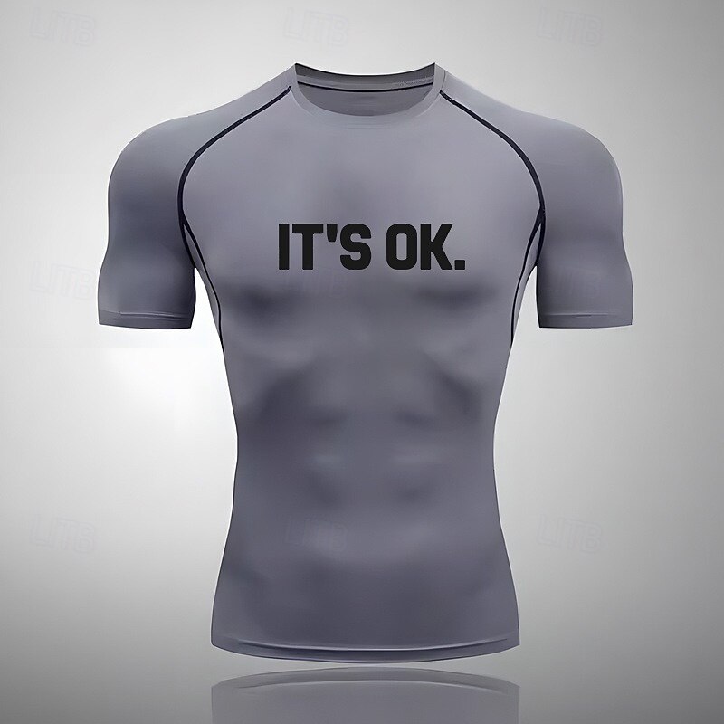 HOT ! Men's Compression Shirt Athletic Shirt Gym Shirt Fitness Shirt Short Sleeve Tee Tshirt Casual Athleisure Letter Quick Dry Soft Breathable Gym Workout Walking Jogging Sportswear Activewear Black White