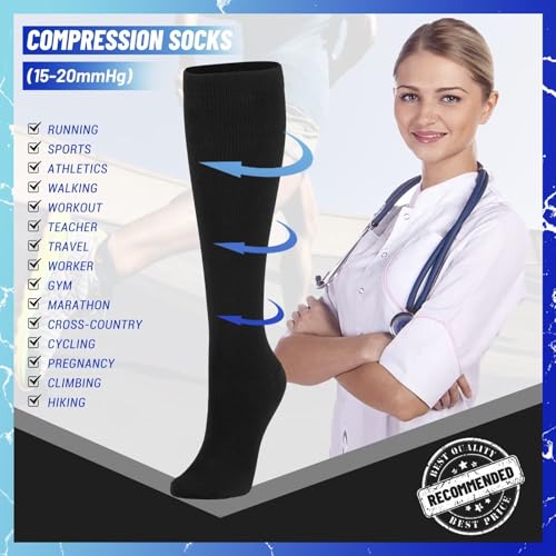 • ENHANCED PERFORMANCE: Provides 15-20 mmHg compression to improve blood circulation and oxygen flow; helps reduce fatigue and supports muscle recovery; ideal for athletes, teachers, flight attendants, office workers, pregnant women, nursing mothers, and seniors