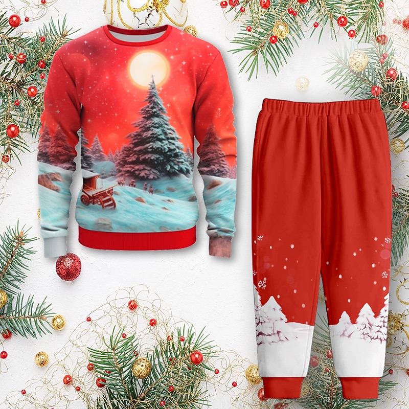 More information about Boys 3D Santa Claus Sweatshirt & Sweatpants Set Set Long Sleeve 3D Printing Fall Winter Active Fashion Cool Polyester Kids 3-12 Years Crew Neck Outdoor Street Vacation Regular Fit