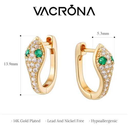 HOT ! VACRONA Gold Hoop Earrings Huggie Earrings for Women 14k Gold Plated Small Hoops Green Snake Shell Beaded Earrings Hypoallergenic Jewelry Gift