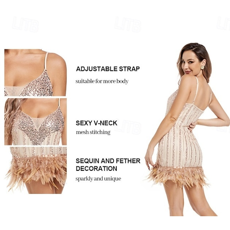 More information about Retro Vintage Roaring 20s 1920s Flapper Dress Cosplay Costume Outfits The Great Gatsby Wedding Guest Sequins Feather Fancy Dress Women's Christmas Halloween Carnival Halloween Party / Evening Wedding