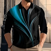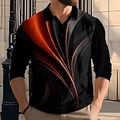 More information about Men's Geometic Line Polo Long Sleeve Polo Shirts Lapel Casual Athleisure Daily Wear 3D Print Buttons Spring Fall Winter Red Blue Green