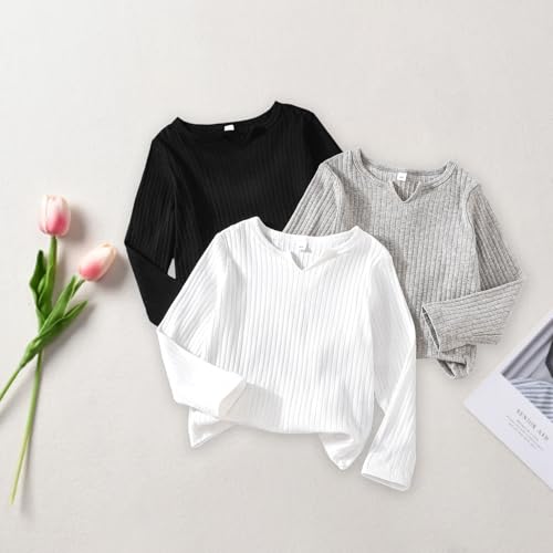 3 Pack Kids Long Sleeve Tees Girls' Soft T-Shirts Ribbed Basic Crewneck T-Shirts Top for Girls Boys 3