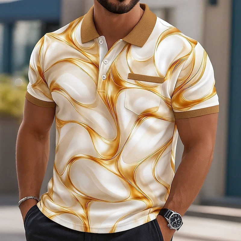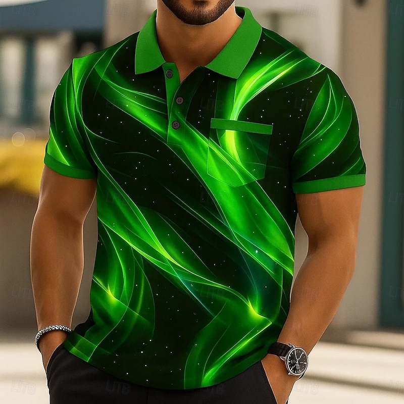 Men's Graphic Polo Short Sleeve Polo Shirts Collared Shirts Business Casual Outdoor Athleisure Daily Wear 3D Print Buttons Summer Black Red Navy Blue 7