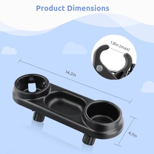 3-in-1 Snack Tray for Strollers, Organizer with Cup Holders and Non-Slip Clip for Flat Handrails 5