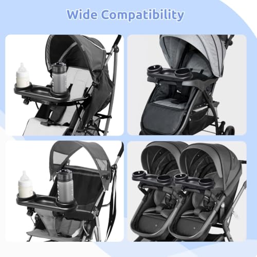 3-in-1 Snack Tray for Strollers, Organizer with Cup Holders and Non-Slip Clip for Flat Handrails 7