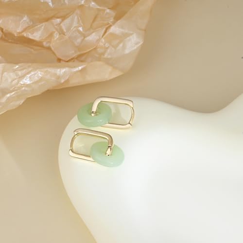 HOT ! Jade Earrings Gold Square Hoop Earrings for Women Trendy Hypoallergenic Earrings Cute Jade Jewelry Green Earrings for Women Birthday Gifts