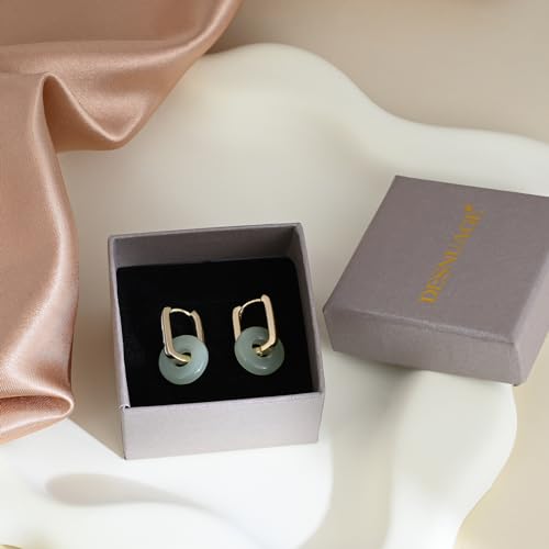 Jade Earrings Gold Square Hoop Earrings for Women Trendy Hypoallergenic Earrings Cute Jade Jewelry Green Earrings for Women Birthday Gifts 7