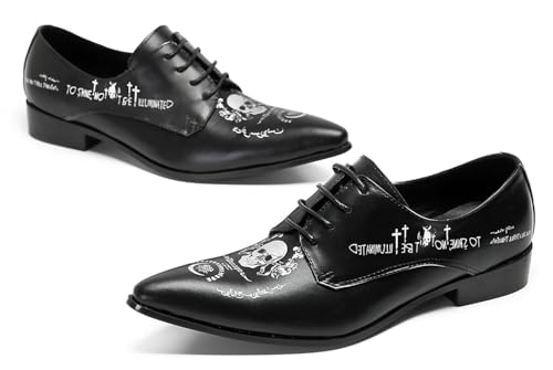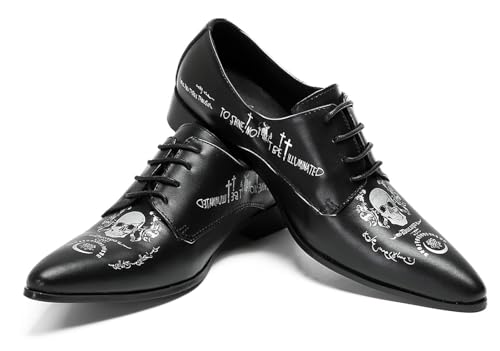 Santimon Black Dress Shoes Men Formal Leather Oxfords Fashion Casual Skull Halloween Derby Prom Wide Walking Shoes for Men 7