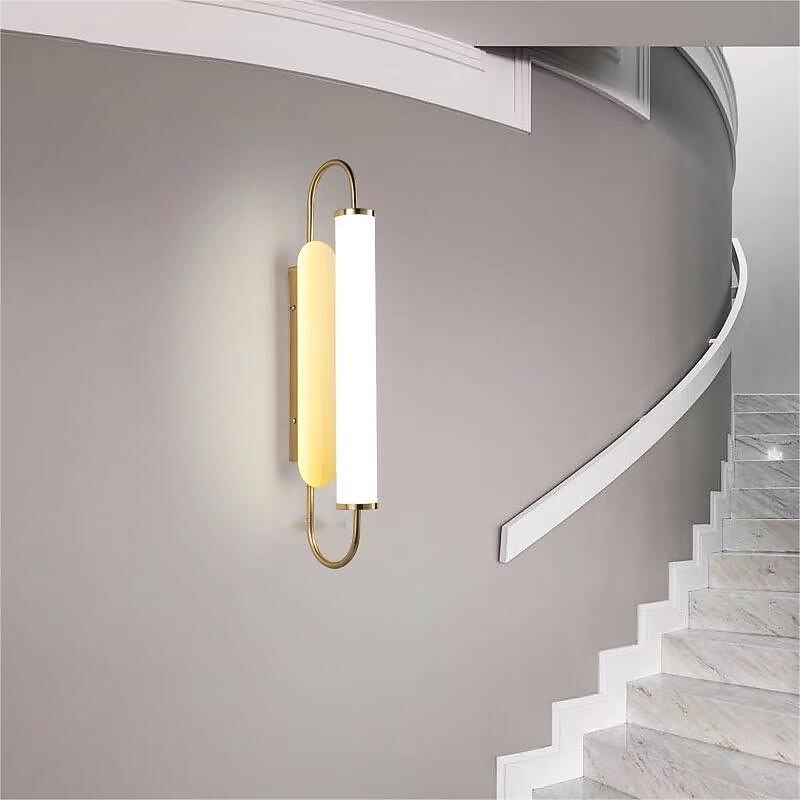 LED Wall Light Brass, Modern Strip Wrought Iron Glass Wall Lamp, Indoor Bedroom Bedside Lighting Wall Lights, Living Room Stair Lamps 2