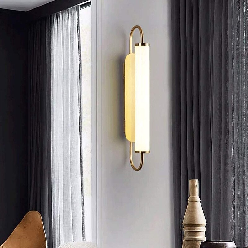 LED Wall Light Brass, Modern Strip Wrought Iron Glass Wall Lamp, Indoor Bedroom Bedside Lighting Wall Lights, Living Room Stair Lamps 1