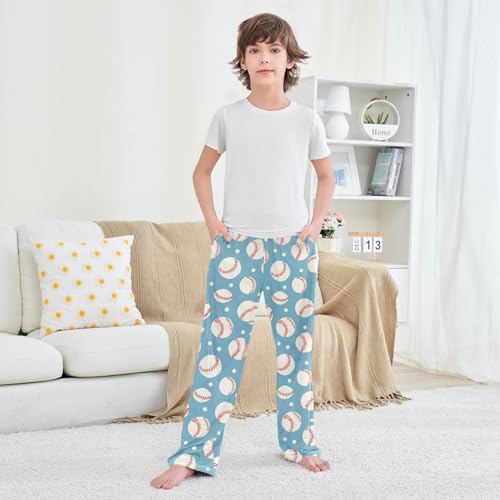 ALAZA White Polka Dot Baseball Ball Pajama Pants Long Sleep Pant Pajama Bottoms Elastic Waist with Pockets 7