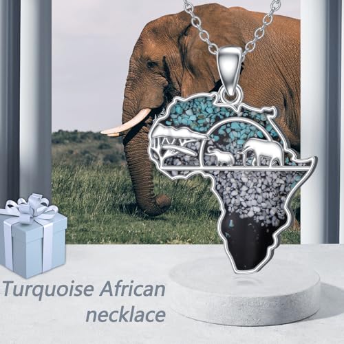 Africa Map Necklace 925 Sterling Silver Turquoise Pendant Jewelry Gift For Men Women 4