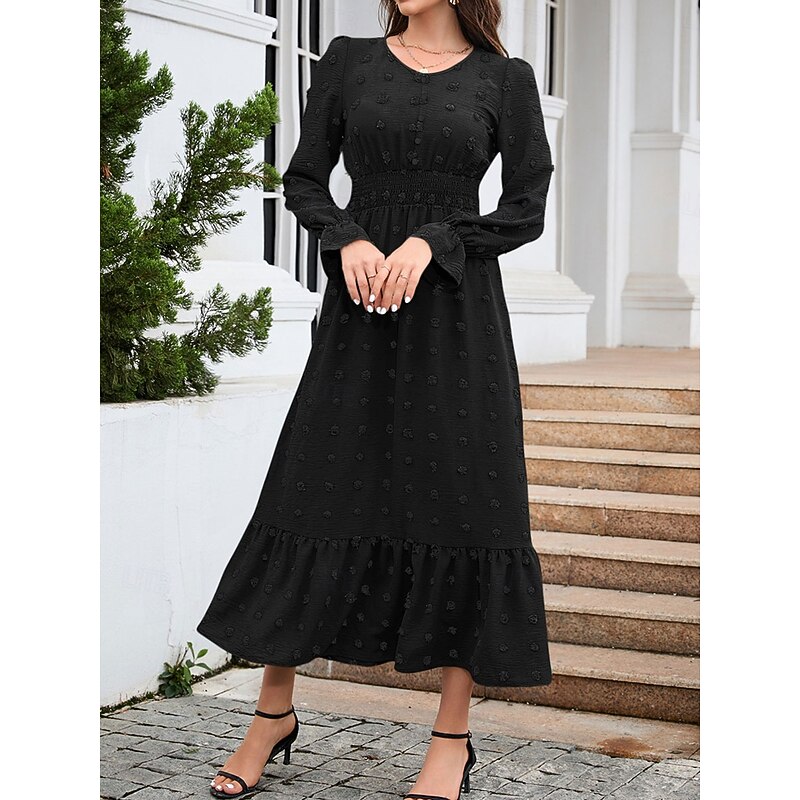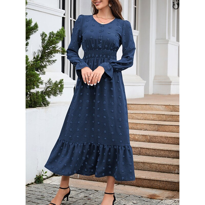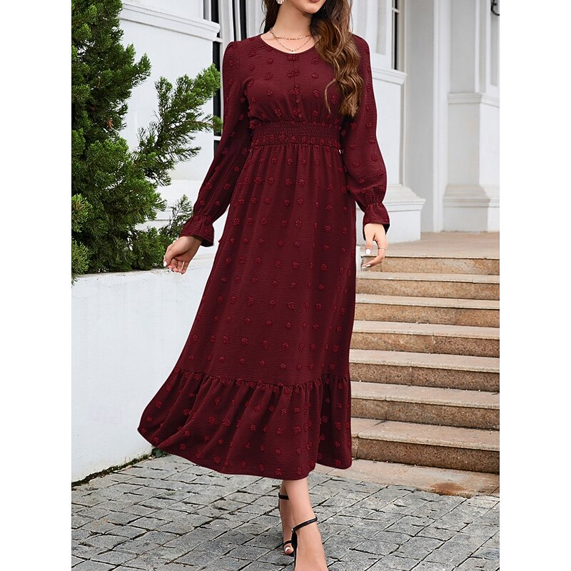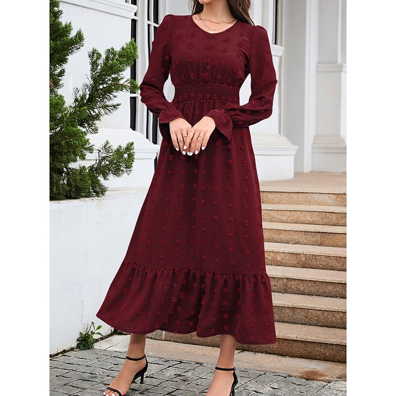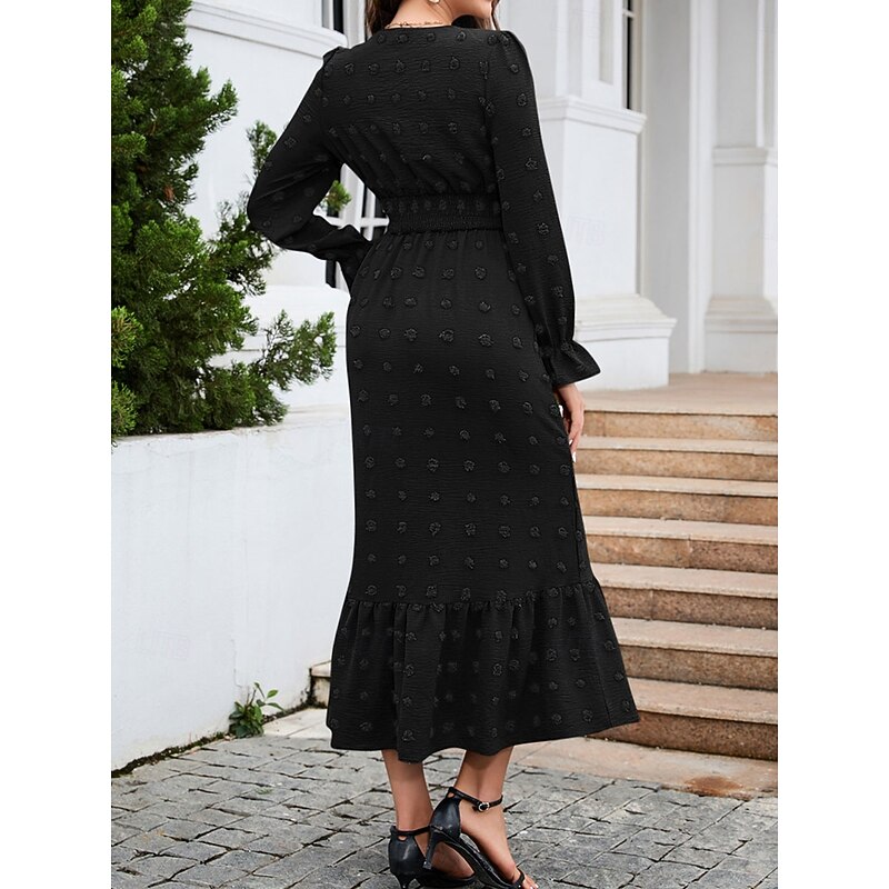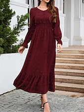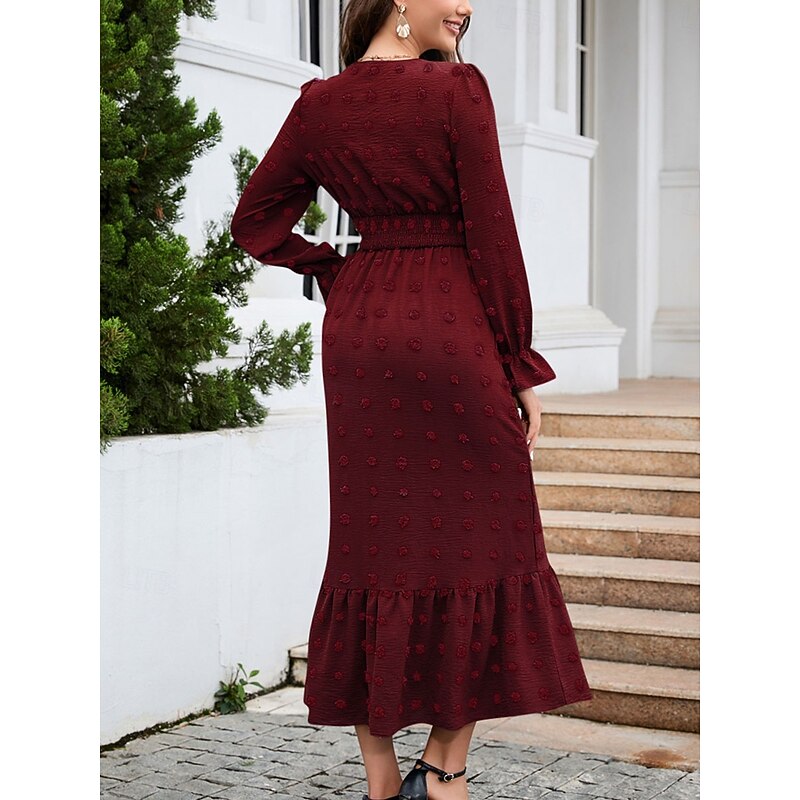 More information about Women's Midi Dress Winter Dress A Line Dress Cute Stylish Casual Vacation Party Daily Regular Fit Plain Long Sleeve V Neck Black Red Blue Green Fall Winter
