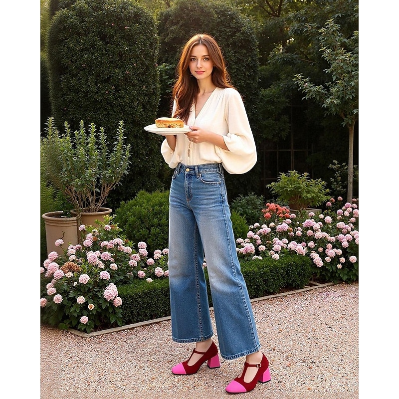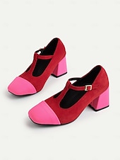 More information about Women's French Style Red and Pink T-Strap Block Heel Mary Jane Pumps - Retro Comfortable Walking Shoes for Afternoon Tea, Parties, Office, and Daily Outfits