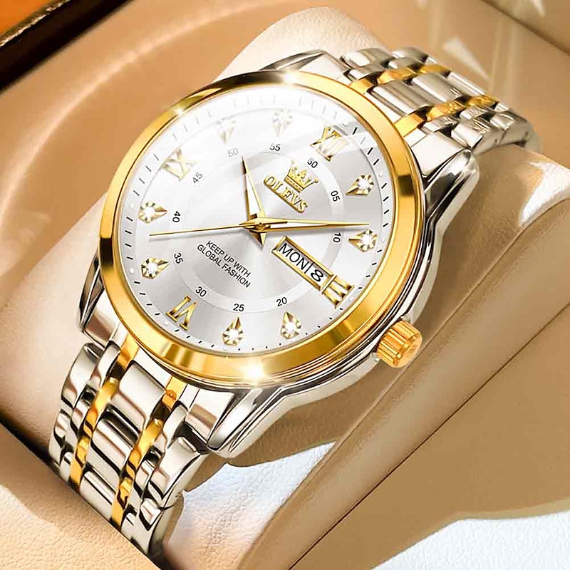OLEVS Quartz Watch for Men Luxury Diamonds Gold Watch Waterproof Luminous Stainless steel Business Men's Quartz Watch Mens Watch 12