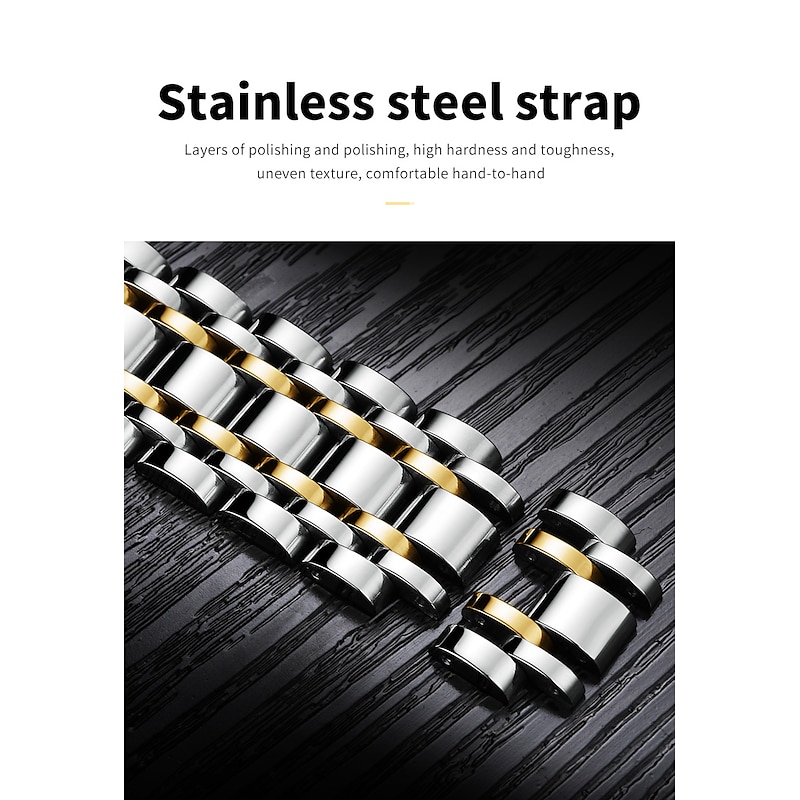 Highlights - 41mm diameter and 11mm thickness for a sleek and modern look - 21mm band width and length for a comfortable fit - High quality high-strength glass mirror and stainless steel shell for durability - 30Meters Deep waterproof for worry-free wear, even while swimming or in the rain - Luminous display allows for easy time-reading in low light conditions - Frame dial design showcases the intricate mechanical movement - Stainless steel strap adds to the comfort and style of the watch - Customer service available for strap extensions, ensuring a perfect fit for all.