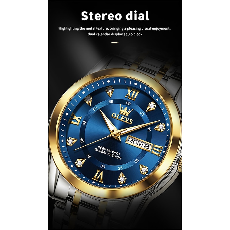 More information about OLEVS Quartz Watch for Men Luxury Diamonds Gold Watch Waterproof Luminous Stainless steel Business Men's Quartz Watch Mens Watch