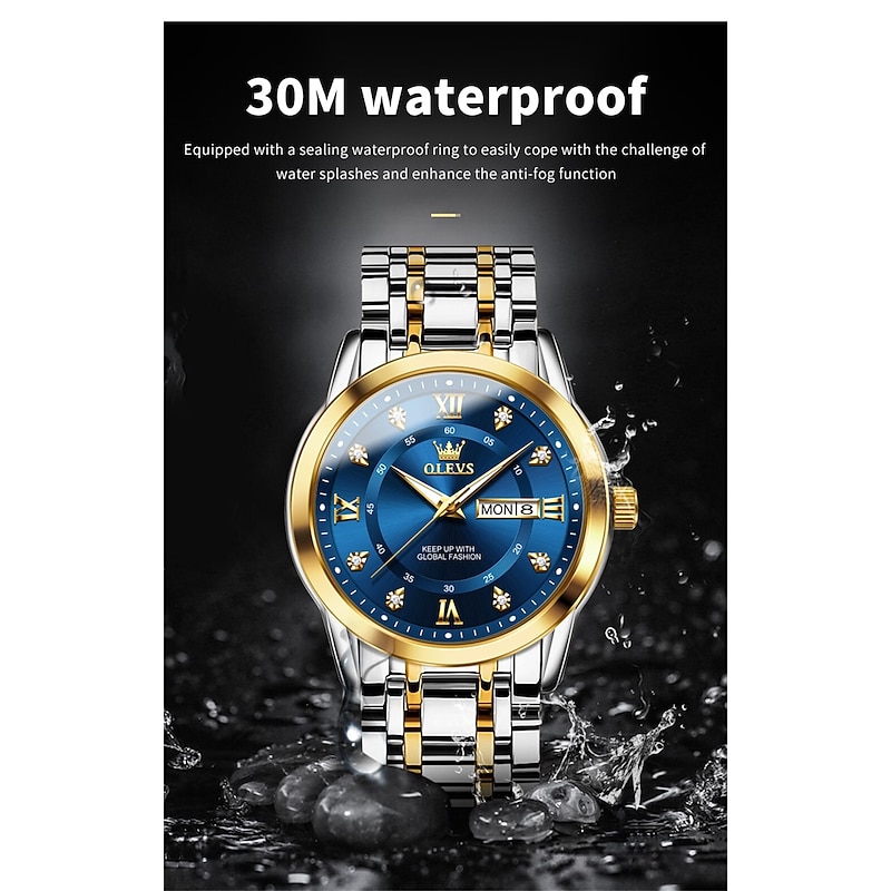 OLEVS Quartz Watch for Men Luxury Diamonds Gold Watch Waterproof Luminous Stainless steel Business Men's Quartz Watch Mens Watch 2