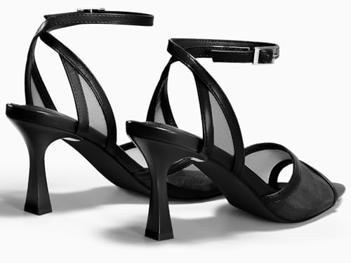 • Features: These mesh heels feature open toe, kitten heels, strappy design, ankle buckle strap, leather-trimmed details, making them a must-have addition to your shoe collection.