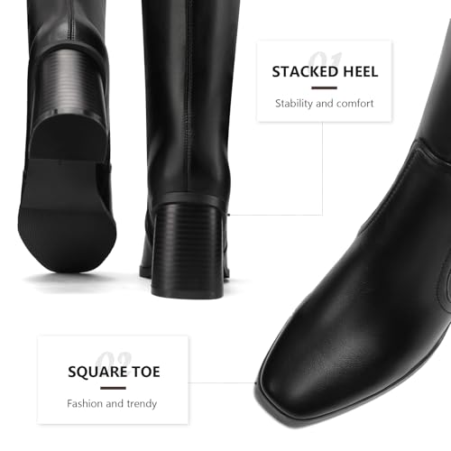 • 🌟Stylish Square Toe: These black knee high boots for women feature a stylish square toe, adding a modern and retro touch to your ensemble.