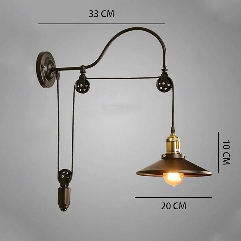More information about Vintage Retro Wall Light Indoor Wall Sconce Adjustable Industrial Style Black Metallic Lamp with Pulley Design 110-240V