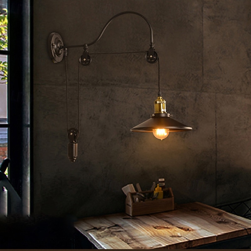 HOT ! Vintage Retro Wall Light Indoor Wall Sconce Adjustable Industrial Style Black Metallic Lamp with Pulley Design 110-240V