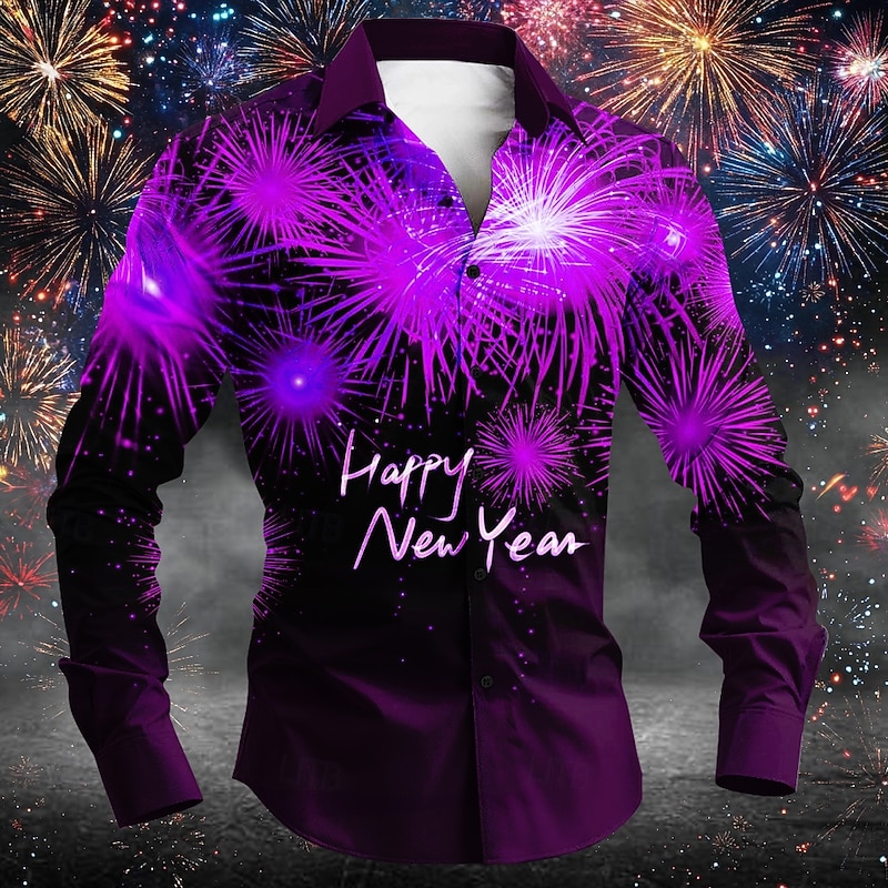 New Year Men's Letter & Number Shirt Long Sleeve Casual Party Daily Spring Fall Winter Turndown Pocket Red Blue Purple Green 5