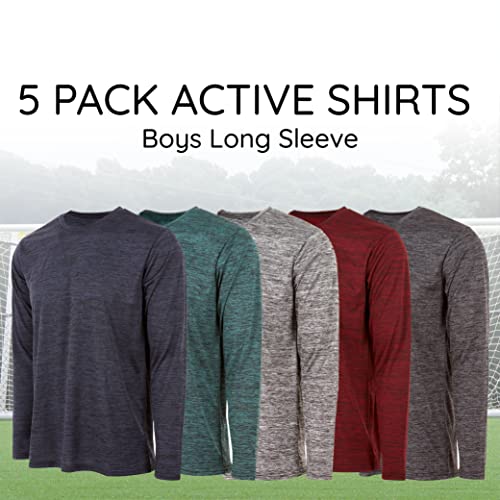 Essential Elements Boys Active Shirt - Quick-Dry Athletic Workout Training Stretch Crew Neck Long Sleeve Top 5 Pack 5