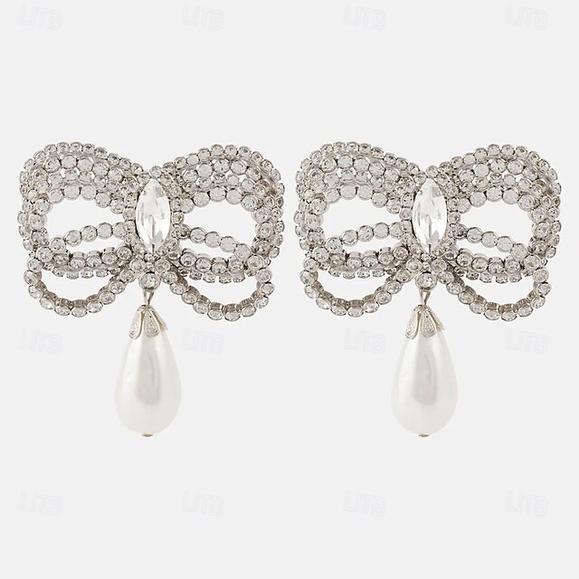More information about Women's Stud Earrings Geometrical Drop Precious Bowknot Elegant Fashion Pearl Earrings Jewelry Silver For Wedding Party Gift 1 Pair
