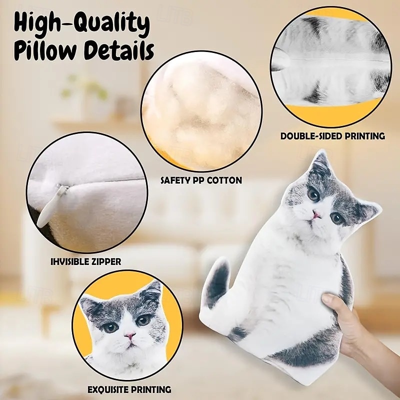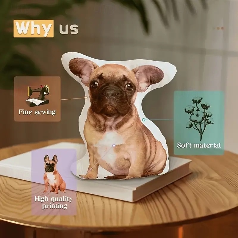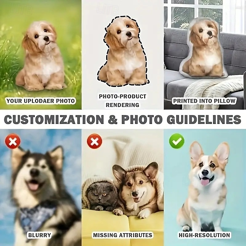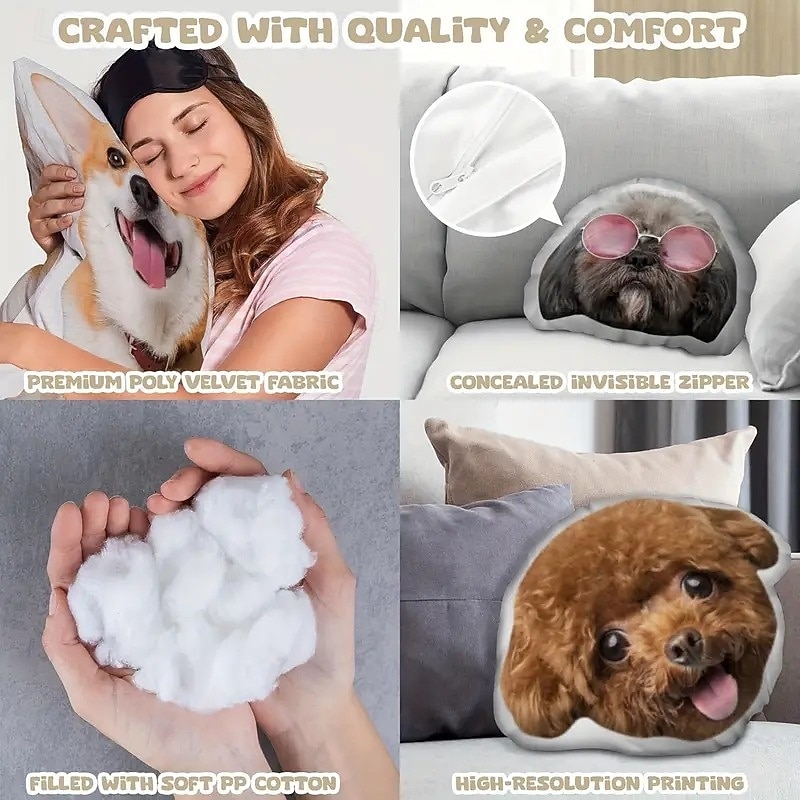 Highlights Soft & Cuddly Comfort : This personalized pet memorial pillow offers a warm and comforting way to cherish memories, made from ultra-soft fabric that’s perfect for snuggling. Duplex Printed for Lasting Detail : Featuring high-quality printing on both sides, it beautifully displays your pet's image with vivid, lasting colors. Hand Washable & Durable : Designed for easy care, this pillow is hand washable to keep it fresh and looking new, making it ideal for long-term keepsakes. Modern Design with Zip Closure : Contemporary style with a discreet zipper closure allows easy access to the cotton-filled insert , ensuring both elegance and convenience. All-Season Decorative Accent : Suitable for any room, this pillow serves as a cherished all-season throw pillow , blending seamlessly with your decor while honoring a beloved pet.