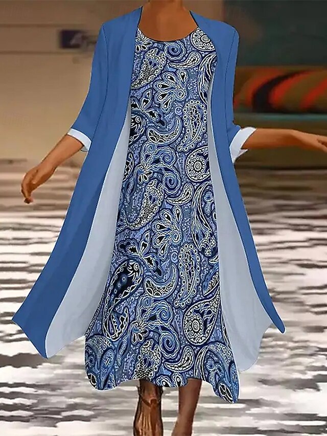 More information about Women's Dress Set Maxi Dress A Line Dress Casual Graphic Tribal Print Midi Dress 3/4 Length Sleeve Crew Neck Daily Blue Purple Green Summer Spring Regular Fit