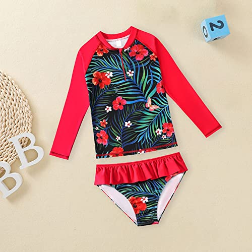 Girls Swimsuit Kids Girls Hawaii Ruffles Long Sleeve Zip Up Rash Guard Swimsuit Two Bikini Set Long Toddler Guard Suit 6