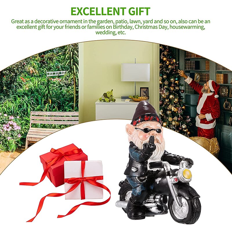 More information about Garden Statues Outdoor, Dwarf Ornament Decorative, Gnome Figurine Resin Garden Statue Waterproof Art Ornament Funny Interesting Garden Decor Sculpture Dwarf Ride Motorbike for Garden Patio Lawn